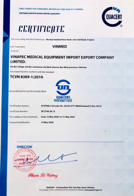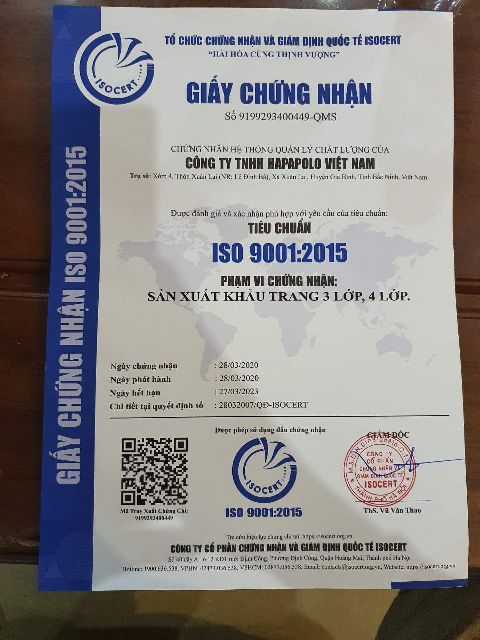 Khẩu Trang Y Tế Kháng Khuẩn Cao Cấp 4 lớp *Xuất Xứ: Việt Nam *Hạn sử dụng: 5 năm (In trên bao bì) *Số lượng: 1 cái *Thành Phần: Vải không dệt, vải lọc kháng khuẩn. *Công Dụng: Sản phẩm khẩu trang 4 lớp Đăng Dương với lớp vải lọc kháng khuẩn cùng các lớp vải không dệt cao cấp giúp ngăn ngừa bụi cùng vi khuẩn và giọt bắn hiệu quả, bảo vệ sức khỏe cho gia đình bạn. ***LƯU Ý: SẢN PHẨM CHẤT LƯỢNG (TIỀN NÀO CỦA ĐÓ): Hiện nay trên thị trường có rất nhiều loại khẩu trang với giá rất rẻ, nhưng chất lượng vải thì rất mỏng, không có lớp kháng khuẩn, làm cho việc mang khẩu trang trở nên vô ích khi vẫn bị bi khuẩn, khói bụi tấn công. HÃY LÀ NGƯỜI TIÊU DÙNG THÔNG MINH. – Khẩu trang 4 lớp : giúp lọc bụi, ngừa nước bắn và ngăn ngừa vi khuẩn hiệu quả nhờ lớp vải lọc kháng khuẩn và vải không dệt chống thấm nước. – Sản xuất trong hệ thống phòng sạch đặt tiêu chuẩn CDMP-ASEAN của Bộ Y Tế. – Thun đeo to, chắc chắn và mêm mịn. – Thiết kế vừa vặn, ôm sát khuôn mặt. #khautrangyte #khautrangkhangkhuan #khautrang #khautrangvai