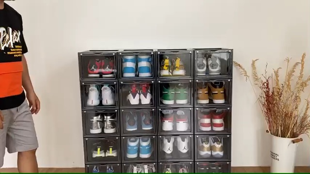 RAP BOX Thương hiệu về hộp giày cao cấp kích thước hộp: ngang 26cm , cao 19cm sâu 35cm Cửa mở Nam châm Rất tiện lợi Trọng Lượng: 1kg nhựa dày dặn Đảm Bảo không nơi nào có được chất lượng tuyệt vời hơn. Chịu lực tốt : 150kg có thể xếp chồng lên nhau thành một bức tường lớn. Hộp đựng được jordan, và tất cả sneaker. Đặc điểm lớn nhất là có thể lắp ráp được rất tiện lợi vận chuyển Phụ kiện bể vỡ sau này đều có thể mua lẻ hoặc thay thế. ———————————————————- 5 Đặc Điểm Nỗi bậc Chỉ Có ở Hộp RapBox – Cửa mở Nam châm không cần phải nhấn mở – Hộp Lắp ráp, tháo rời rất tiện gọn – Nhựa cao cấp dày, trọng lượng 1kg, các hộp ngoài thị trường mỏng manh thường 0.4kg – Có thể mua lẻ phụ kiện khi hư hỏng – kích thước to hơn các loại khác : ngang 26cm cao 19cm sâu 35,5. có thể chứa được giày cao cổ. giày cao gót thỏa mái. ———————————- Hộp đựng giày cửa mở Nam Châm Trọng Lượng: 1,000 Gram Giá màu đen +1 hộp giá 170k + TRÊN 10 HỘP: 145K/ HỘP Giá hộp màu trắng +1 hộp giá 185k + TRÊN 10 HỘP: 160K/ HỘP #hopdunggiay
