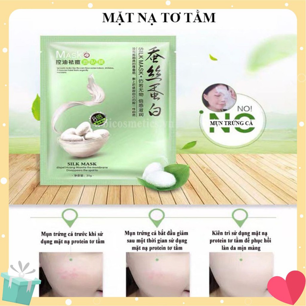 MẶT NẠ TƠ TẰM ONE SPRING SILK MASK – Xuất xứ: Nội Địa Trung – Thương hiệu: One Spring – Dung tích: 30ml / miếng Mặt nạ được làm từ sợi tơ tằm siêu mềm mượt và dịu nhẹ, ôm khít cả khuôn mặt. Kết hợp với các dưỡng chất từ thiên nhiên mang lại cho bạn làn da căng mướt mịn màng và tràn đầy sức sống. Sau khi đắp bạn sẽ phải ” ngỡ ngàng ” vì công dụng tuyệt vời của MẶT NA ***Công dụng: -Thành phần dưỡng chất trong mặt nạ đuợc chiết xuất hoàn toàn từ thiên nhiên dịu nhẹ với làn da, lượng tinh chất bên trong khá nhiều, các nàng có thể tận dụng chúng để massage khuôn mặt nhé – Việc này vừa để thư giãn khuôn mặt vừa có thể giúp tinh chất thẩm thấu đều khắp khuôn mặt mình hơn. – Sau khi đắp xong, da được cấp đủ ẩm rất mát và mềm mượt, căng mọng. ***Gồm có 5 loại: – Tím: Dưỡng trắng da – Xanh dương: dưỡng ẩm, cấp nước cho làn da – Vàng: làm mờ vết sẹo trị thâm – Hồng: cấp ẩm, làm sạch da, dưỡng trắng – Xanh lá: ngăn ngừa trị mụn, cung cấp dưỡng chất cho da ***Hướng dẫn sử dụng: -Làm sạch mặt, gỡ mặt nạ ra, đắp trên mặt tránh vùng mắt và môi. Bạn đừng quên sử dụng dưỡng chất còn dư để massage phần cổ. – Sau 15 – 20 phút, gỡ mặt nạ và kết hợp vỗ nhẹ cho dưỡng chất được hấp thụ hoàn toàn. – Sử dụng 2 – 3 lần/ tuần để đạt hiệu quả tốt nhất HSD: 3 năm kể từ NSX NSX: Xem trên bao bì Mỹ Phẩm Bi Cosmetic SHOP CAM KẾT 1. Mỹ Phẩm Bi Cosmetic chỉ bán các sản phẩm an toàn tuyệt đối, chất lượng tốt đã được người tiêu dùng tin tưởng. 2. Hình ảnh, clip đăng tải là sản phẩm của Mỹ Phẩm Bi Cosmetic, không copy từ các Shop khác. 3. Sản phẩm trước khi giao đến khách hàng sẽ được kiểm duyệt và đóng gói cẩn thận. 4. Shop có hỗ trợ đổi sản phẩm nếu khách hàng không ưng ý. Liên hệ trong vòng 24h. 5. Mỹ Phẩm Bi Cosmetic luôn đặt khách hàng làm trọng tâm, bảo vệ quyền lợi cho người tiêu dùng. *******LIÊN HỆ SHOP Hotline: 0346902060 #MyPhamBiCosmetic #onespring #matnaonespring #onespring #mask #dapmat #myphamnoidiatrung #matnaduongda