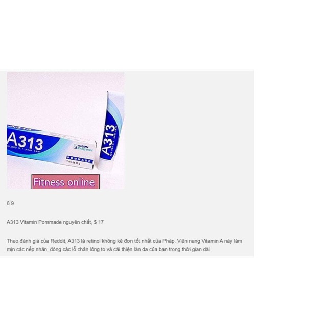 Chị em nào dùng a313 rồi cho em xin 500 review với Bà c bên Pháp đang khen quá Dạo này mình đang mê mẩn bác beauty vlogger Gadgetlily, được nghỉ lễ nên ngày nào cũng cày video skincare của bác đến 3h sáng như fangirl thứ thiệt :))) Da bác này đỉnh thực sự, bác này người Nhật, 60 tuổi nhưng da thì 20 tuổi nhờ mấy tuýp kem “nhạt nhẽo” của hiệu thuốc Pháp, retinoid A131 pommade và kem cấp ẩm, nó còn không phải là dược mỹ phẩm cơ, nhưng mà xịn cực :)) Link youtube của bác: https://www.youtube.com/watch?v=7b19-qdlsaw Đợt này bên Pháp lạnh nên da chị mình cũng sần sùi tí tẹo định xúc ngay em Pommade A313 test thử phát. Cơ mà cx khó mua và đắt, tìm mãi đc chỗ giá xinh. Hình như nhiều bạn cx đang say mê bác Gadgetlily này A313 là 1 dạng Retinoid – “siêu anh hùng” vừa giúp giảm mụn, mờ thâm lại chống lão hóa mà bác sĩ da liễu nào cũng dùng Theo đánh giá của Reddit, A313 là retinol không kê đơn tốt nhất của Pháp. tuýp Vitamin A này làm mịn các nếp nhăn, đóng các lỗ chân lông to và cải thiện làn da của bạn trong thời gian dài..