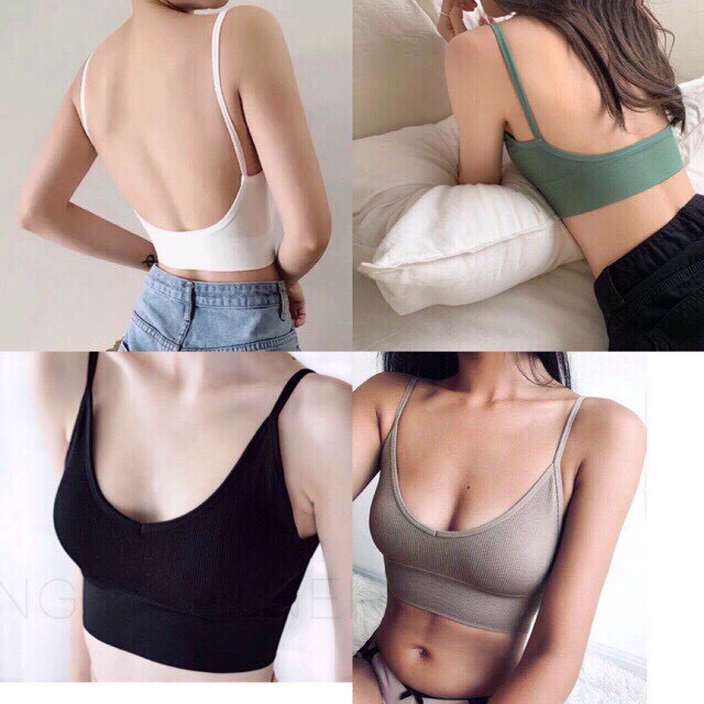 Bộ sản phẩm: Áo Bra Len Tăm Hở Lưng Sofm Wear.