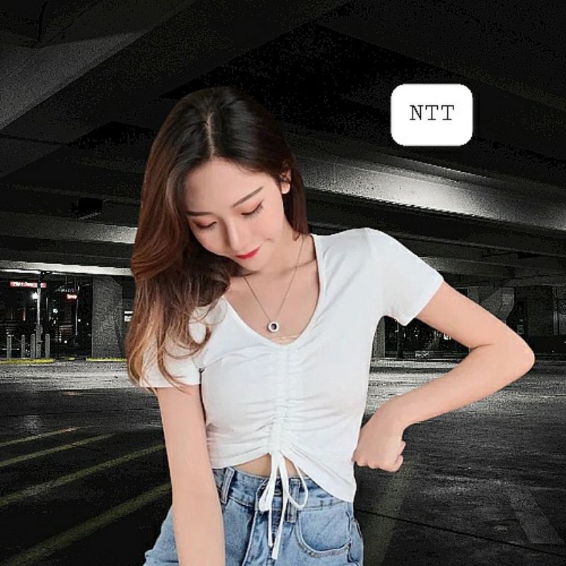 Bộ sản phẩm: Áo Croptop Cổ Tim Tay Ngắn Rút Dây.