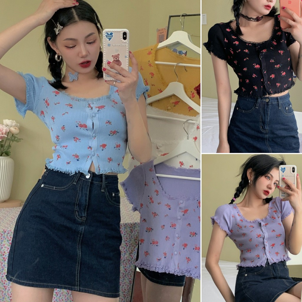 Áo croptop tay ngắn năng động gồm 10 màu sặc sỡ phù hợp mặc mùa hè chỉ cần mix với jean suông ống rộng là tuyệt vời cho 1 outfit đơn giản dạo phối rồi ! Cúc bọc, kết hợp viền ren ở cổ áo và tay áo làm cho chiếc croptop không hề nhàm chán mà cực kì style, fashion. Freesize v1 dưới 90 hoặc dưới 55kg