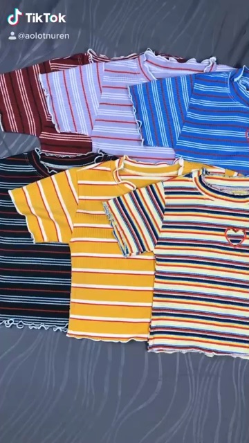 Bộ sản phẩm: Áo croptop khoét tim sọc nhiều màu.