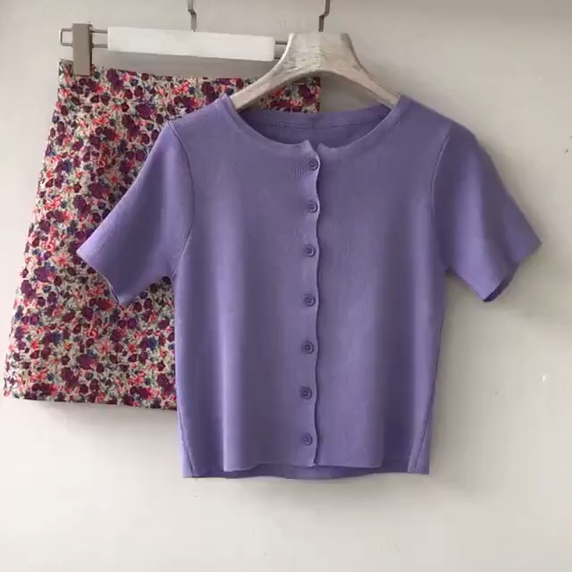 Bộ sản phẩm: Áo croptop len dệt kim ngắn tay ngắn màu tím.
