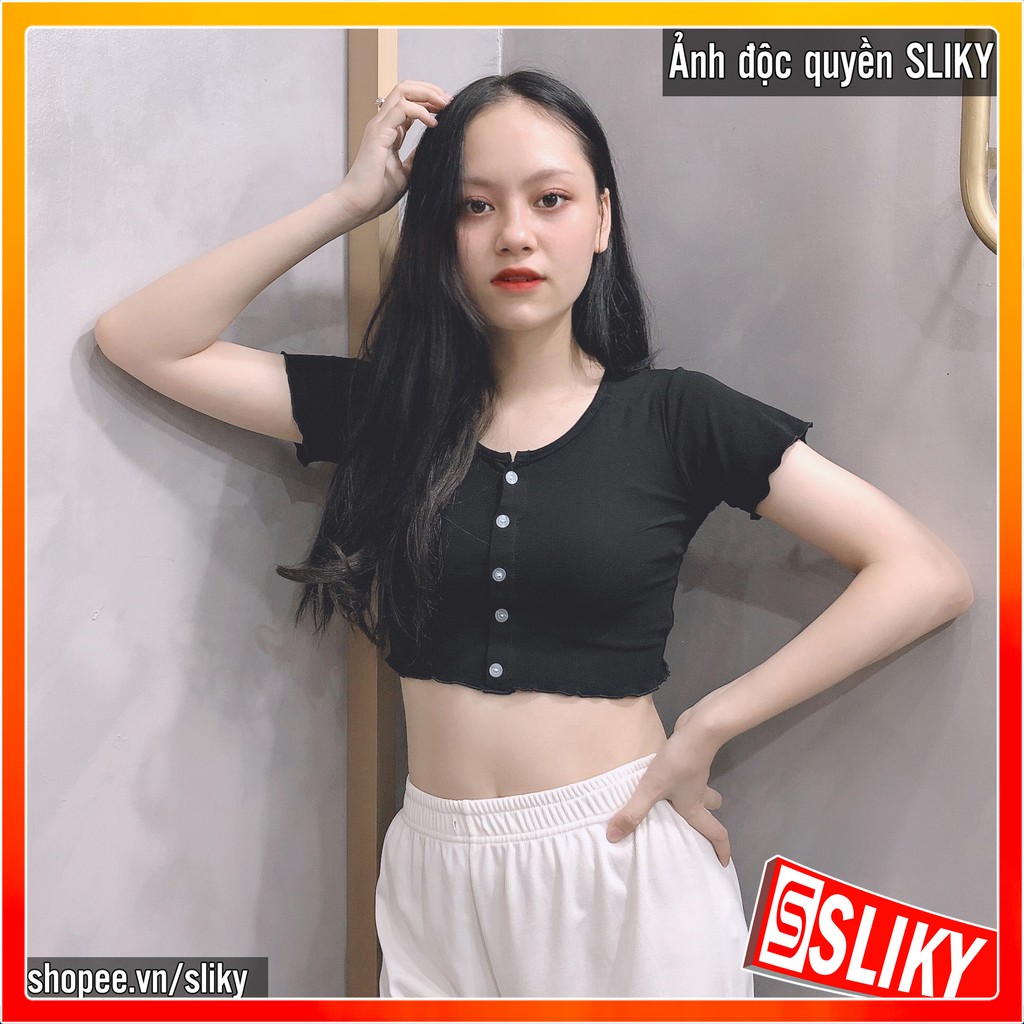 Bộ sản phẩm: ÁO CROPTOP LEN TĂM NÚT THẬT – SLIKY.
