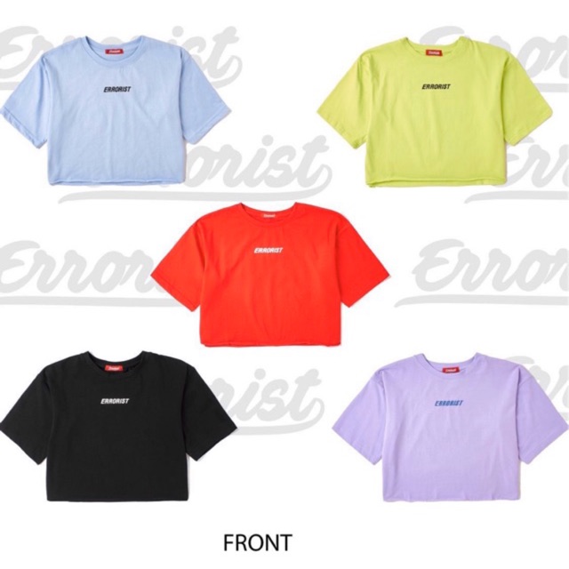 áo croptop in logo Errorist, có 6 màu kích thước: ngang 47, dài 42cm (freesize) + Time: 10AM- 10PM