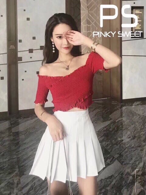 Bộ sản phẩm: Áo croptop trễ vai 8 màu siêu dễ thương.