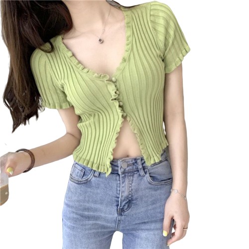 Bộ sản phẩm: Áo Dệt Kim Tay Ngắn Dáng Ôm Quyến Rũ Trẻ Trung Hợp Thời Trang.