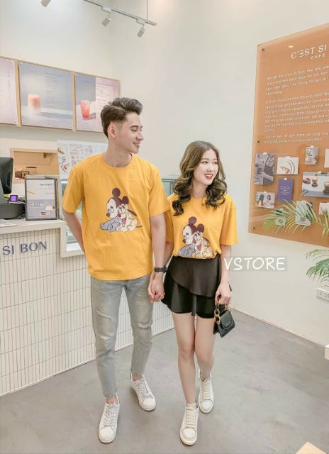 Bộ sản phẩm: Áo đôi nam nữ màu vàng nổi bật cá tính.