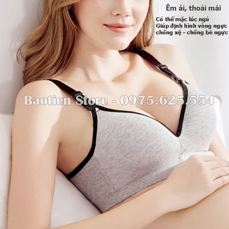 Bộ sản phẩm: Áo lót bầu cho con bú sau sinh, không gọng, đệm mút mỏng, nâng đỡ ngực chống chảy xệ tốt, chất cotton.