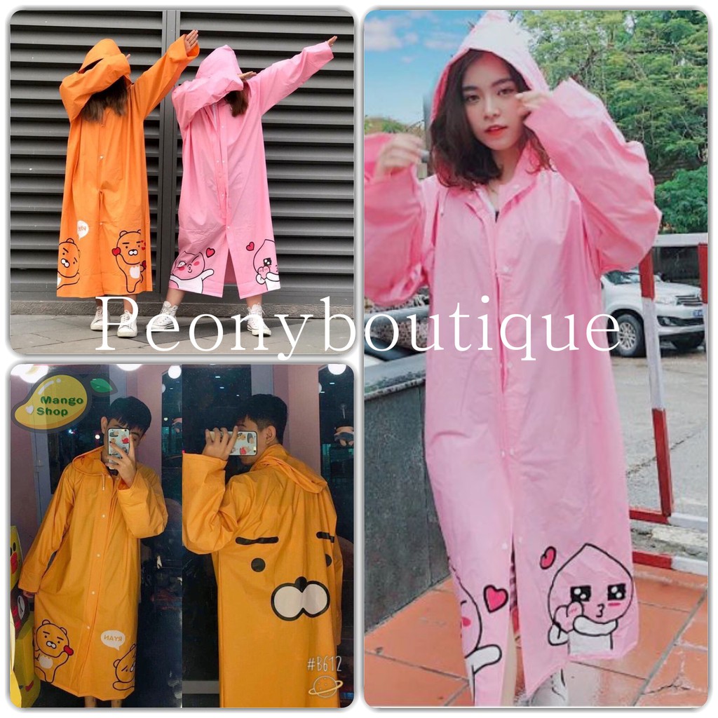 Bộ sản phẩm: Áo mưa Ryan dáng dài Kakao Talk 2 lót khóa chống thấm dày dặn ulzzang màu Hồng.