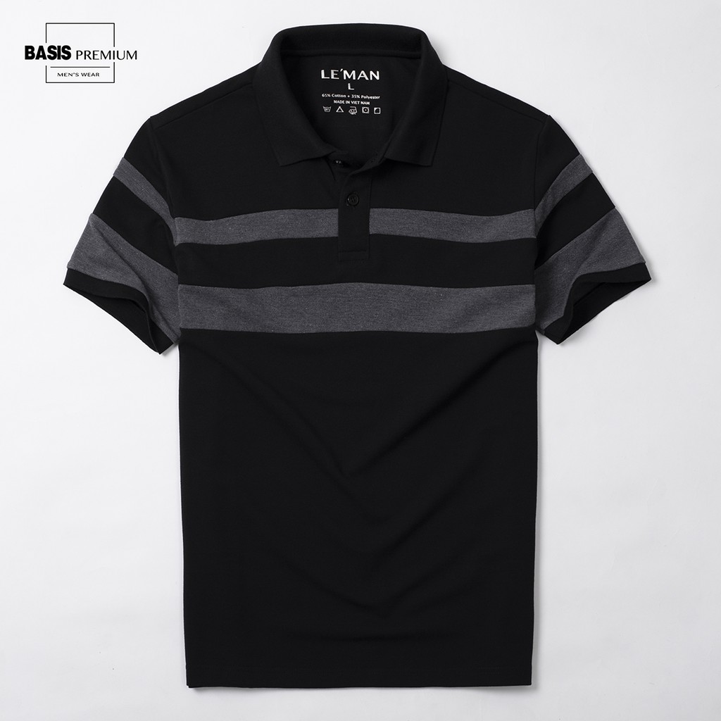 Bộ sản phẩm: Áo polo nam màu đen phối sọc xám, chất liệu cotton xuất xịn Basis APL95.