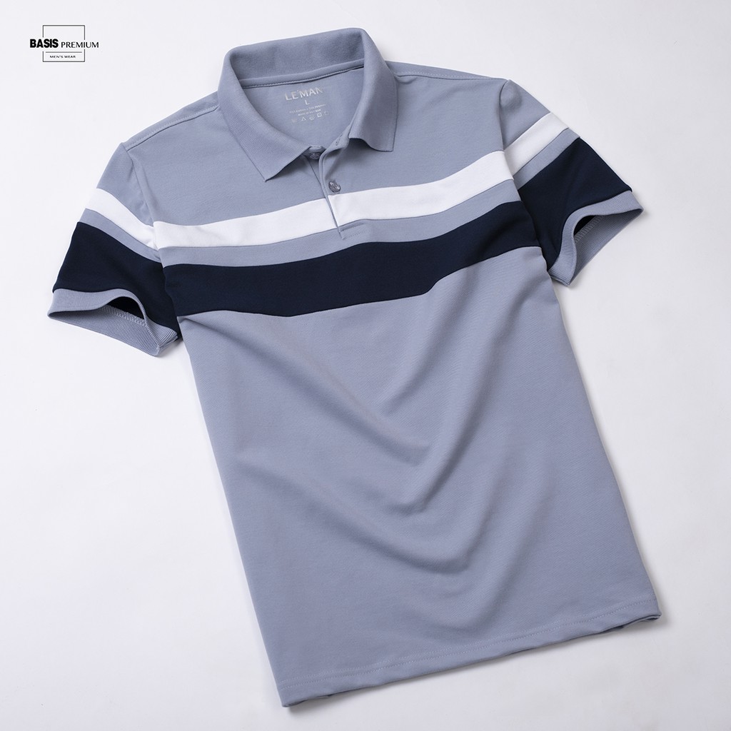 Bộ sản phẩm: Áo polo nam màu xanh môn Basis thiết kế phối sọc, chất liệu cotton xuất khẩu APL59.
