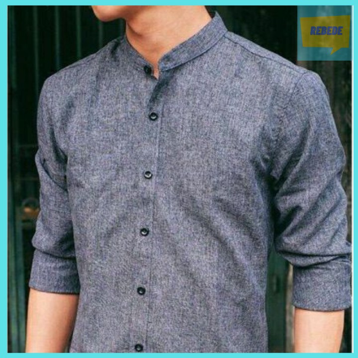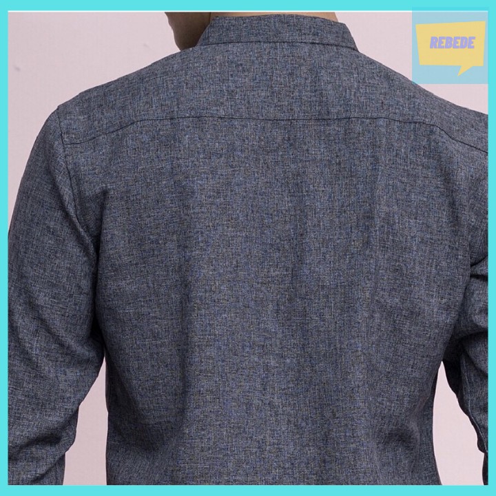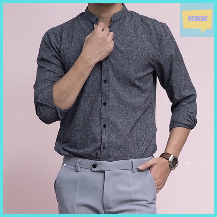 Bộ sản phẩm: Áo sơ mi đũi cổ tàu màu xám tiêu dáng body, chất vải đũi cao cấp.