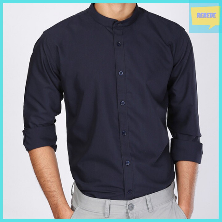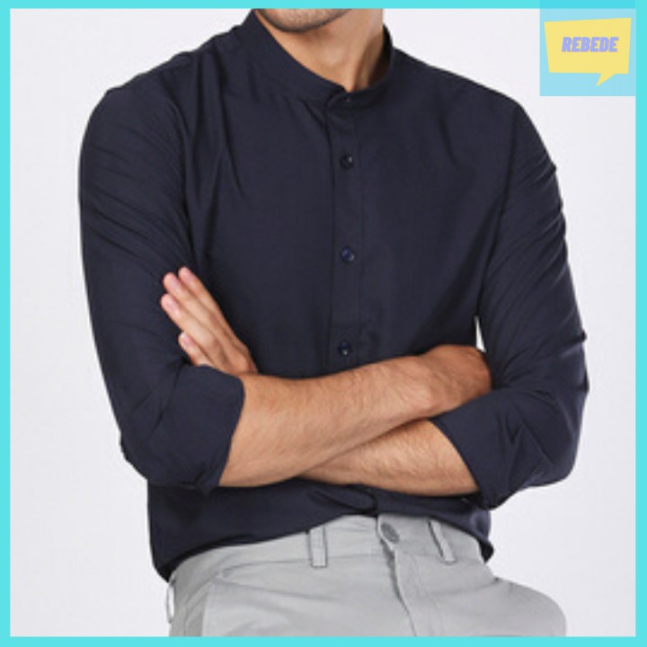 Bộ sản phẩm: Áo sơ mi nam dài tay CỔ TÀU vải lụa co giãn chống nhăn cao cấp.