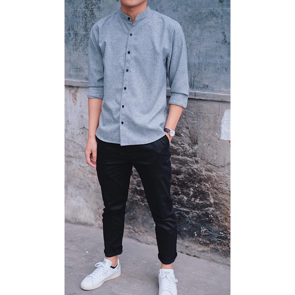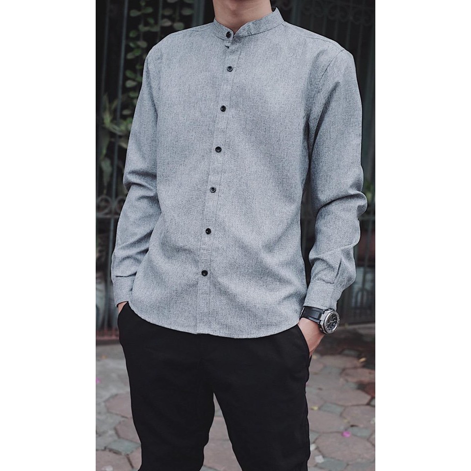 Bộ sản phẩm: Áo Sơ Mi Nam Ikemen Cổ Tàu Màu Ghi Xám.