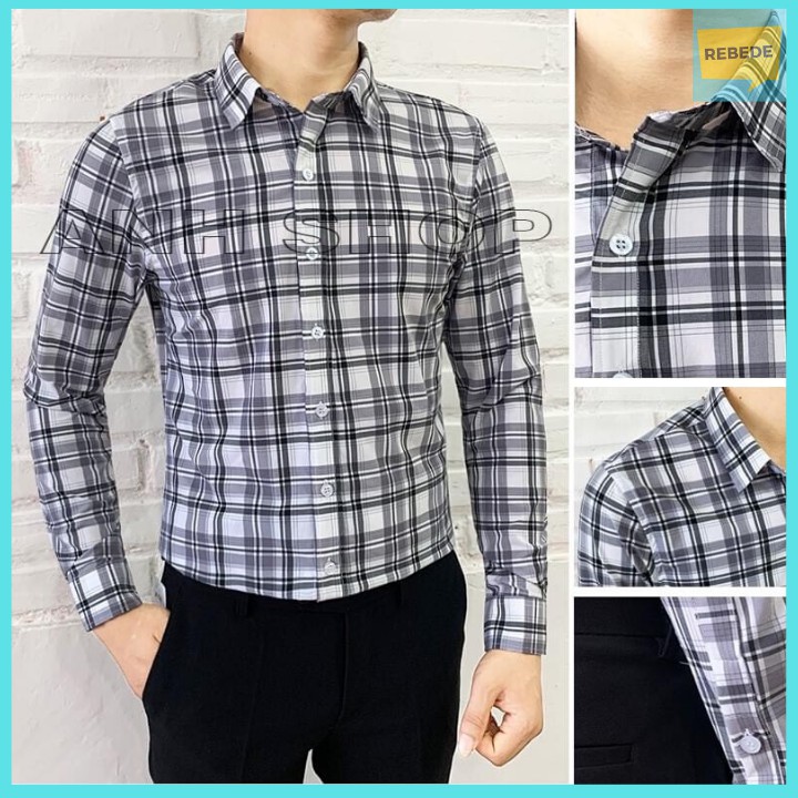 Bộ sản phẩm: Áo sơ mi nam kẻ caro TRẮNG ĐEN phong cách Hàn Quốc.