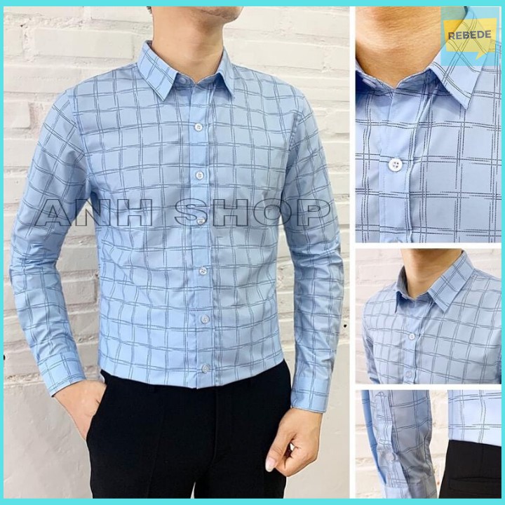 Chi tiết các thông sỗ kĩ thuật kèm hình ảnh của bộ sản phẩm Áo sơ mi nam kẻ caro XANH NHẠT phong cách Hàn Quốc, quý khách xem dưới đây: