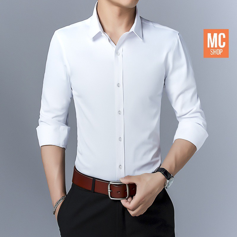 Bộ sản phẩm: Áo sơ mi nam trắng dài tay Hàn Quốc form body.