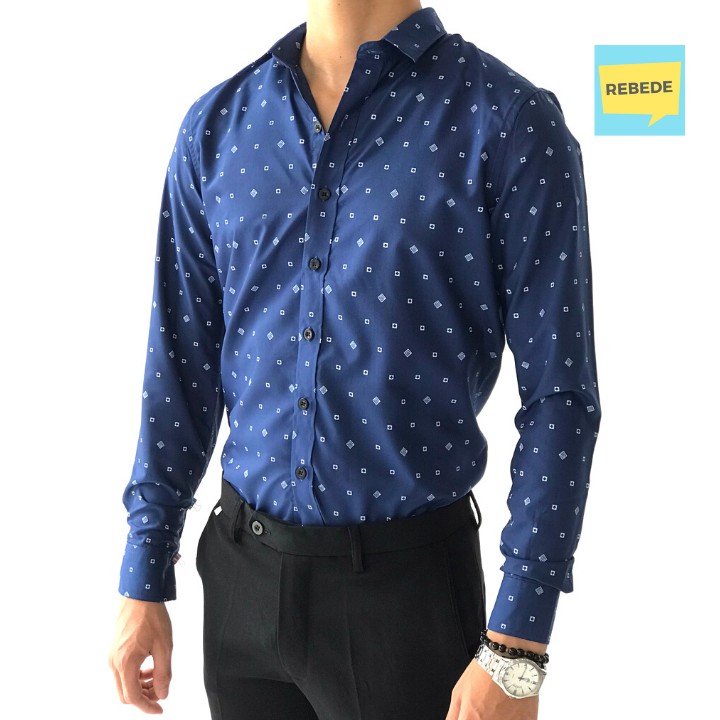 Bộ sản phẩm: Áo sơ mi nam xanh than, kiểu phối họa tiết tinh tế.