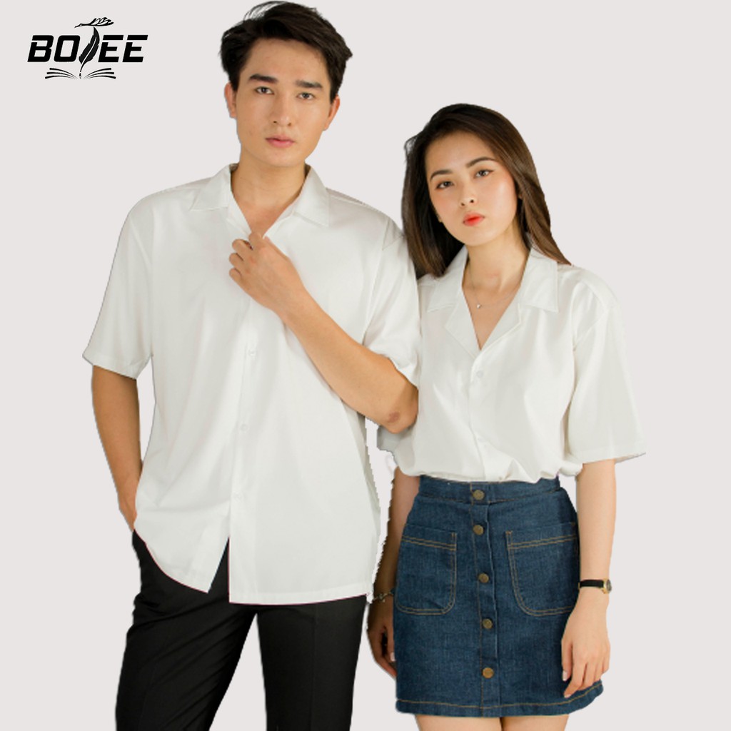 Bộ sản phẩm: Áo sơ mi NGẮN TAY TRẮNG CỔ VEST vải lụa mềm mại form rộng unisex – ulzzang Hàn Quốc 2020.