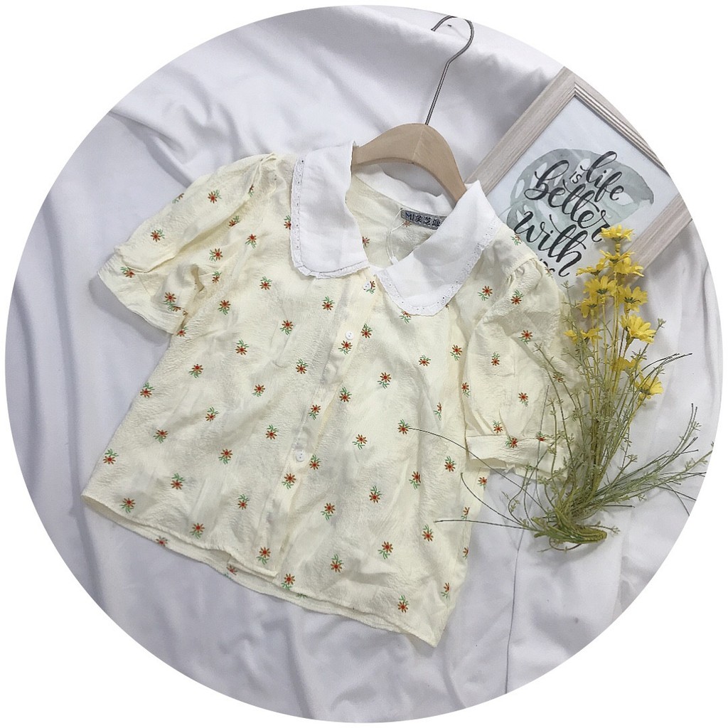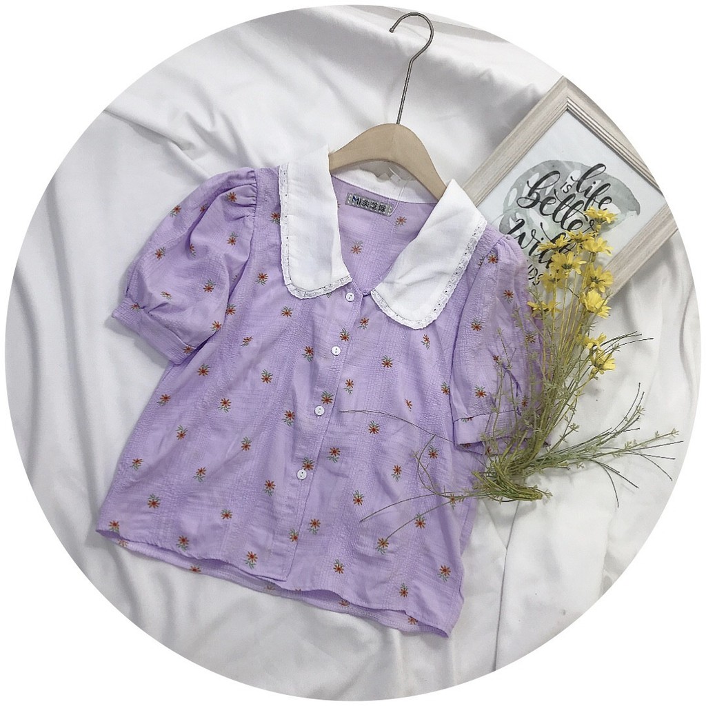 Bộ sản phẩm: Áo sơ mi nữ cổ bèo tay cộc.