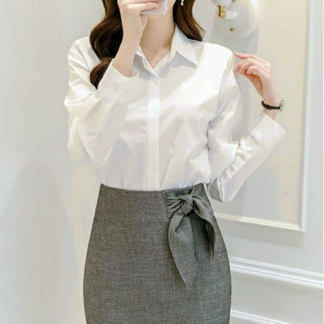 Bộ sản phẩm: Áo sơ mi nữ trắng công sở Xuu Design Ảnh Thật Sơ mi giấu cúc.