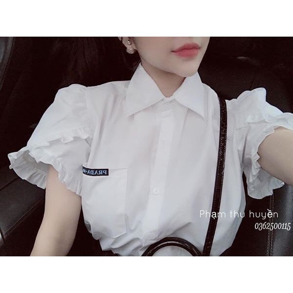 Bộ sản phẩm: Áo sơ mi trắng tay bồng cộc tay chất mềm mại.