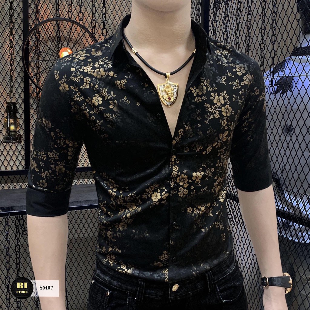 Bộ sản phẩm: Áo Somi Nam Cao Cấp DK05 Đen In Hoa Đậm.