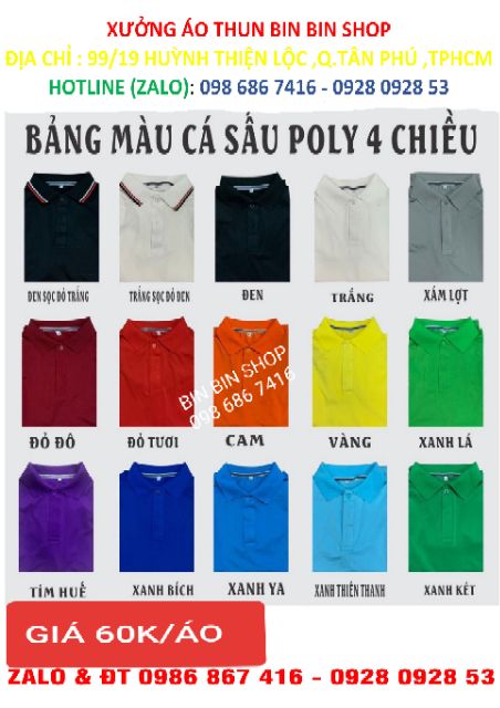 Xưởng ÁO THUN BIN BIN GIÁ SỈ :18K – Cung cấp áo thun trơn giá #sỉ rẻ nhất trên thị trường | + Bảng giá cụ thể: ✅ Đối với size áo bé 1,2,3,4,5,XS — Trên >100 áo giá #20k — Trên > 200 áo giá #19k — Trên >500 áo giá #18K — Dưới <10 áo giá #25 ✅ Đối với size S,M,L,XL+2k,XXL+4k -- Trên >100 áo giá #23k — trên > 200 áo giá #22k — Dưới <10 áo giá #30k -- Trên >1000 ÁO THƯƠNG LƯỢNG ➕ Thun cá sấu cổ trụ poly thái # Áo thun cá sấu poly thái cao cấp lẻ 60k,sỉ 100 áo 55k Chất liệu vải mềm, mượt, co giản 4 chiều Sản phẩm 100% sản xuất tại xưởng ■ Thun cá sấu cổ trụ poly mè phối sọc lẻ 55k,sỉ từ 10 áo 50k ——————————– xưởng áo thun Binbin chuyên cung cấp: Sỉ và Lẻ giá rẽ ,chất lượng, -ÁO IN ĐỒNG PHỤC THEO YÊU CẦU 75k – ÁO THUN TRƠN CHƯA IN 25k -ÁO THUN CÁ SẤU CỔ TRỤ 60k – ÁO THUN CÁ SẤU PHỐI MÀU 65k – CÁC LOẠI ÁO IN THEO YÊU CẦU GIÁ SỈ SL từ 10 áo có giá tốt hơn -ÁO NHÓM- ÁO LỚP 40k -ÁO CAFE- ÁO ĐỒNG PHỤC QUÁN ĂN 75k -ÁO SỰ KIỆN- ÁO TEAM 40k -ÁO GIA ĐÌNH- ÁO ĐÔI 45k -ÁO CÔNG TY- ÁO NHÀ HÀNG 40k -ÁO IN HÌNH CHÍNH CHỦ. ÁO IN TÊN. IN CHỮ NHẬN TẤT CẢ CÁC LOẠI ĐỒNG PHỤC In thêm 1 vi tri +15k Số kg tuong ứng voi size để tham khảo. Còn tùy thuoc vào từng dáng người khác nhau. Khách tham khảo nhé Size số 1 : <10kg Size số 2: < 14kg Size số 3: < 18kg Size số 4: < 22kg Size số 5: < 26kg Size số 6: < 30kg Size S : < 45kg Size M: < 55kg Size L: < 62kg Size xl: < 70kg Size XXL: < 80kg _ Áo thun cổ tròn ,Và thun cá sấu cổ bẻ Vải thun co giản tốt dành cho in nhiệt. Chất vải mềm mịn. Thấm hút tốt. Không xù lông. Không ra màu. Không sợ tróc Xưởng in Binbin trực tiếp in mà không qua bất kỳ trung gian nào. Giá gốc tại xưởng Với công nghệ in chuyển nhiệt. Mực thấm sâu vào từng sợi vải.nên không bị co dính hay bong tróc.mực in sắc nét, rõ , bền. Áo Thấm hút tốt, co giản tốt. Mực in sắc nét, bền đẹp, không co dính, không bong tróc. ✅ FB inbox : https://www.facebook.com/lan.kim.75839 ĐT Zalo : 0986867416- 0928092853 Địa chỉ: 99/19 Huỳnh thien lộc ,Q tan phu – TP. Hồ