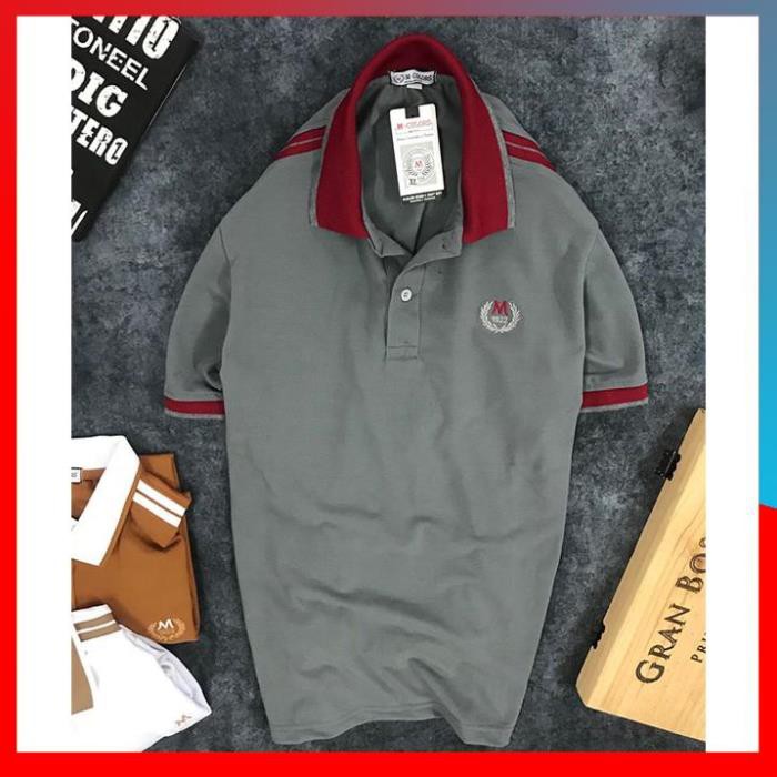 Bộ sản phẩm: Áo Thun Nam Cổ Bẻ Tay Ngắn Phối Sọc Vai Thêu Logo, Thun Cá Sấu 65/35 4 Chiều Cao Cấp.