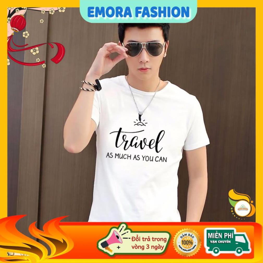 Bộ sản phẩm: Áo thun nam form rộng in chữ Travel | Áo thun nam Cotton mềm mịn | Emora Fashion.