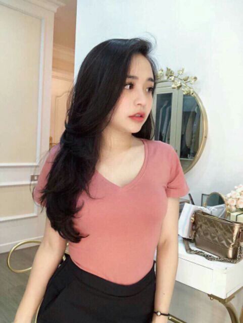 Bộ sản phẩm: Áo thun nữ cổ tim nhiều màu chất thun cotton.
