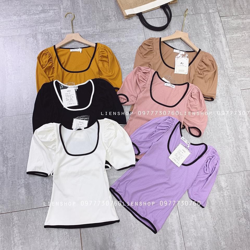 Bộ sản phẩm: áo thun nữ cộc tay vai bông chất gân tăm zip nhiều màu.