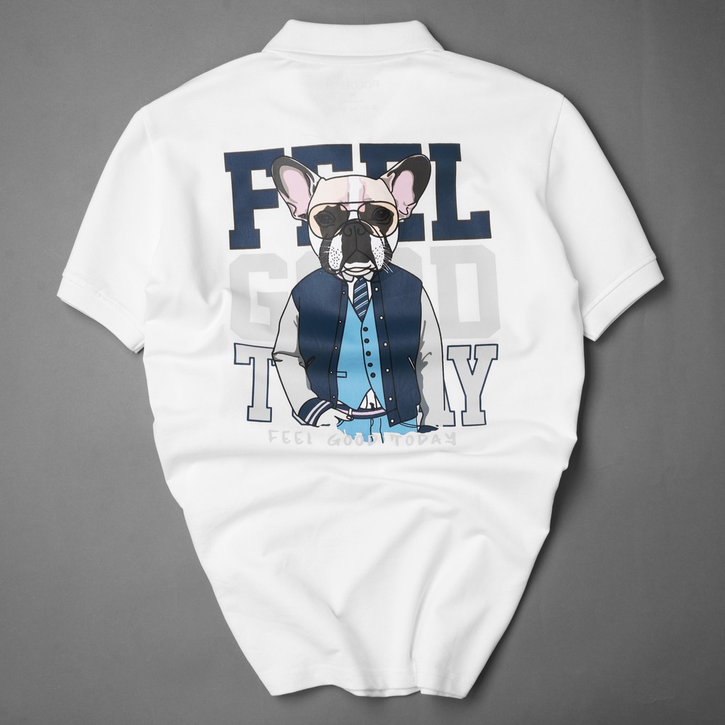 Bộ sản phẩm: Áo thun Polo nam cổ bẻ DODO in hình Pug Dog vải cá sấu Cotton xuất xịn, chuẩn form, Trắng P14 – POLOMAN.