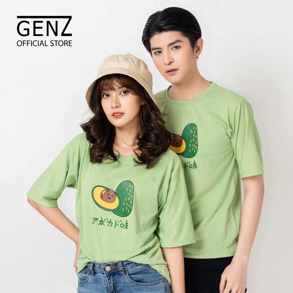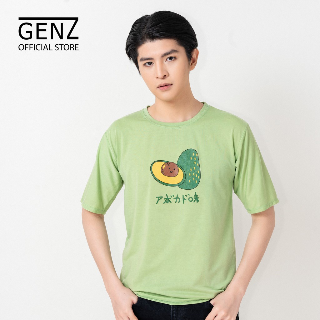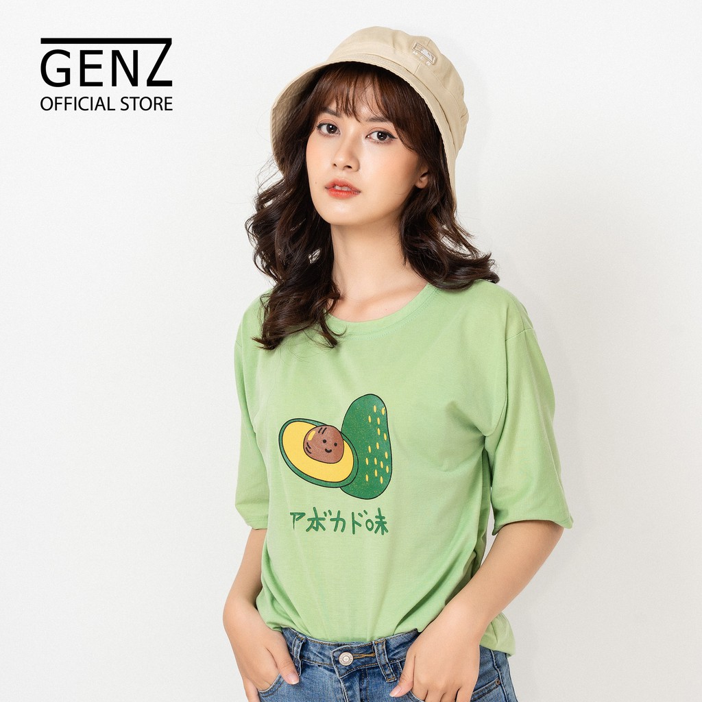 Bộ sản phẩm: Áo thun tay lỡ GENZ dáng Unisex form rộng phong cách Nelly Ulzzang in hình Bơ Nhật, Xanh cốm.