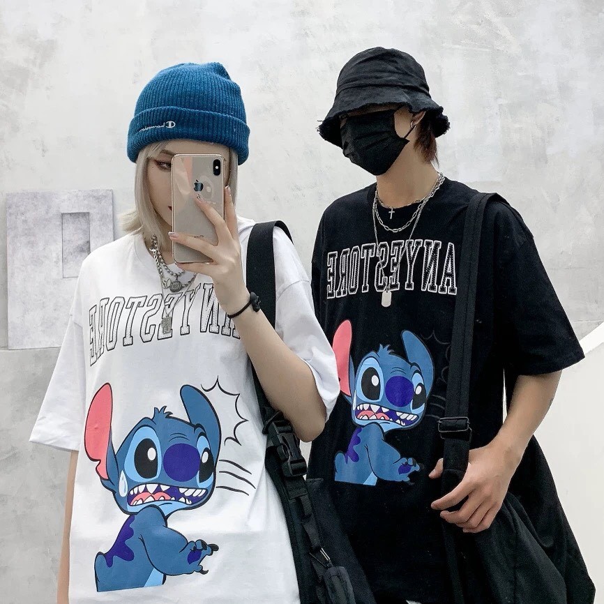 Bộ sản phẩm: Áo Thun Tay Lỡ Stich Đen Trắng Xám Freesize.