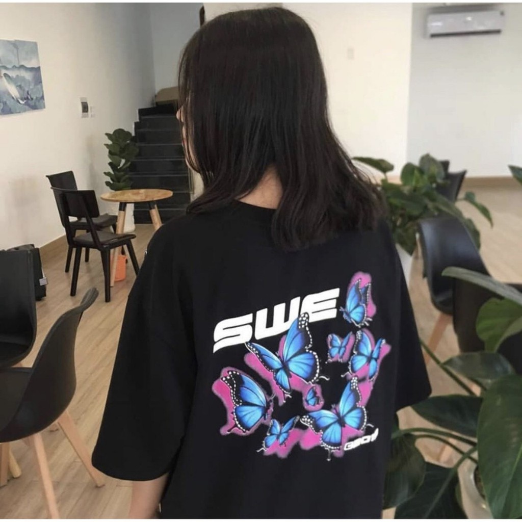 Bộ sản phẩm: Áo Thun Tay Lỡ SWE Cánh Bướm – Form Rộng Freesize < 75 kg.