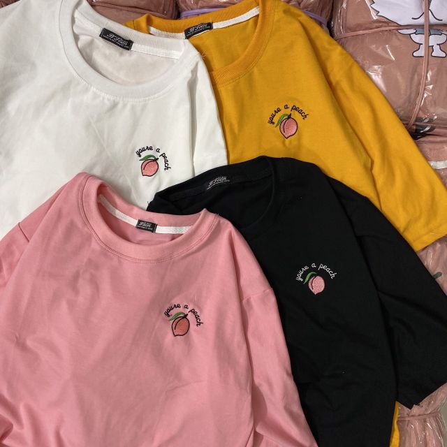 Bộ sản phẩm: Áo Thun tay lỡ thêu Trái đào.