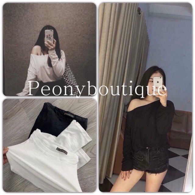 Bộ sản phẩm: Áo Thun Xước Lệch Vai Dài tay Nữ Áo phông giấy mỏng dáng suông ôm bánh bèo tiểu thư ulzzang.