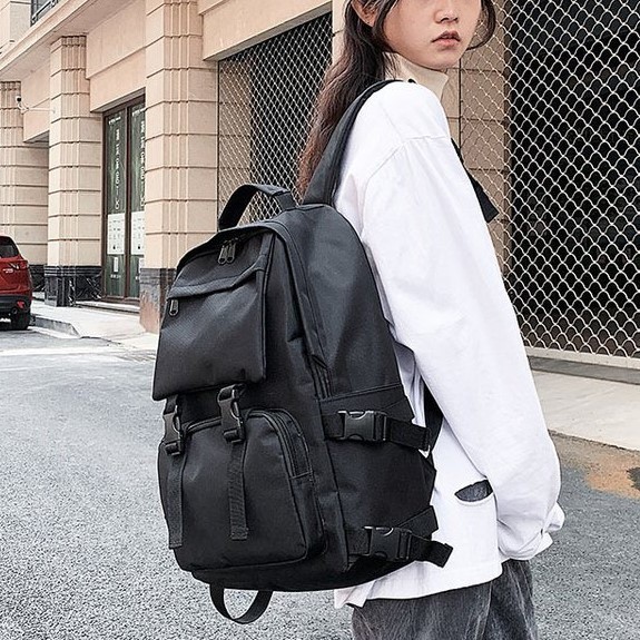Bộ sản phẩm: BALO ĐEN CƠ BẢN NAM NỮ PHONG CÁCH HÀN QUỐC SIZE KHỔNG LỒ 17 INCH.