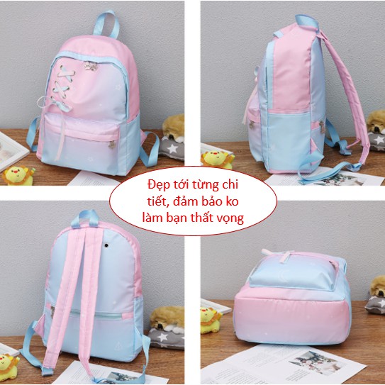 Bộ sản phẩm: Balo học sinh nữ loang màu chống thấm đi học style Hàn Quốc có dây ruy băng hàng Quảng Châu MKZ65.