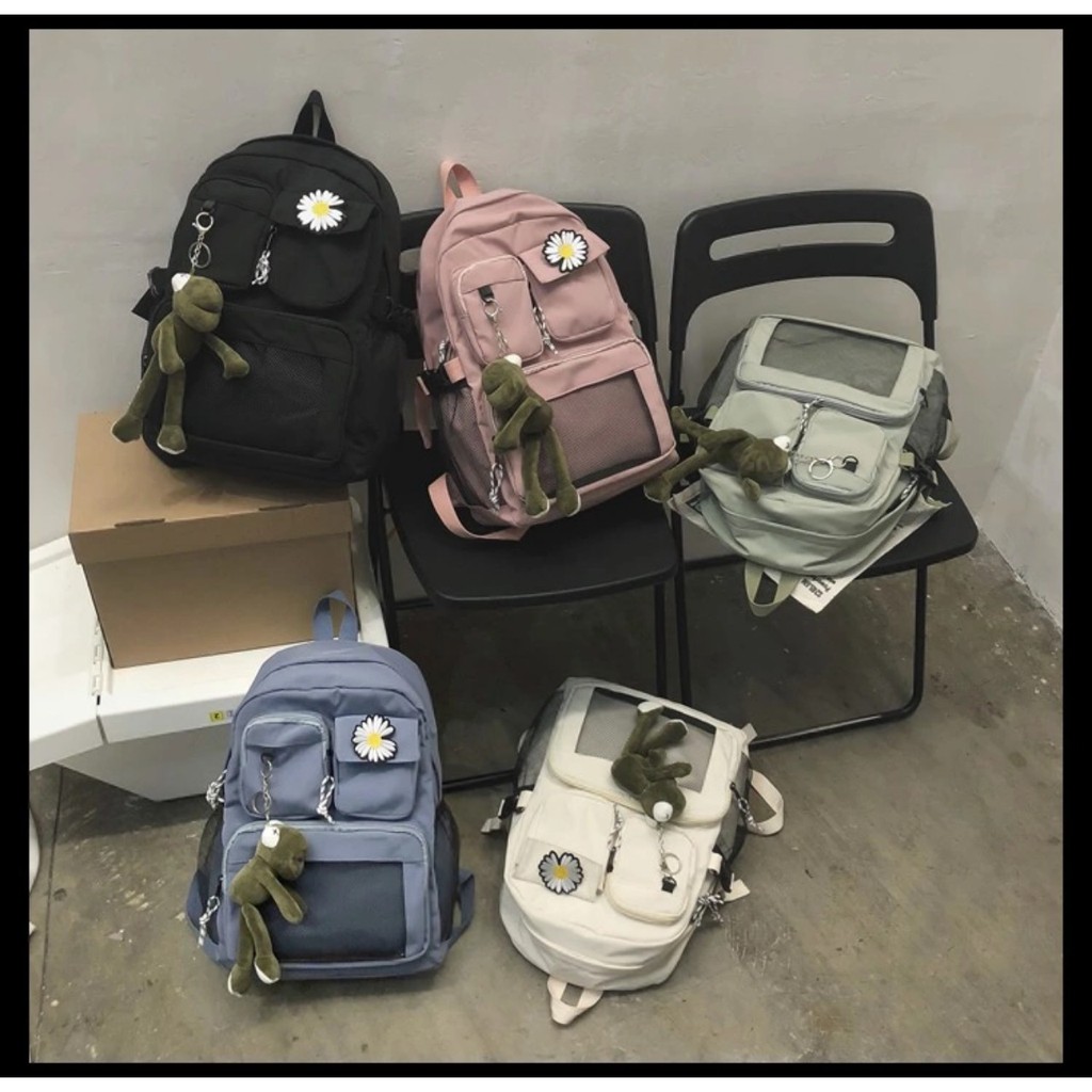 Bộ sản phẩm: Balo pha lưới hoa cúc nhiều ngăn đi học đi chơi đều được.