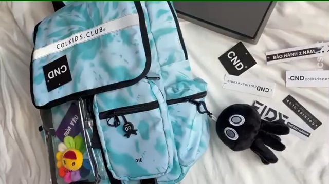 Bộ sản phẩm: Balo phản quang colkids club ss3 trắng và đen và xanh custom.