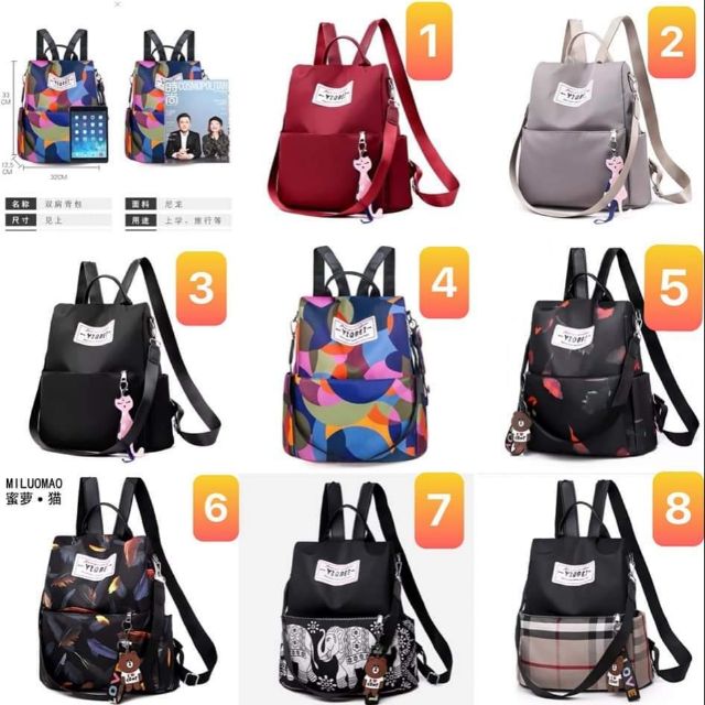 Balo chống trộm kèm móc khóa ❤️❤️Balo thời trang Balo đi học Balo dạo phố kèm móc khóa gấu siêu xinh đây ạ. Balo có dây quai sau và quai trước có thể đeo đc 2 kiểu phối đồ đa phong cách luôn Chất liệu : Vải Dù chống thấm chắc chắn làm bạn hài lòng. Đặc biệt e balo này được thiết kế khóa kéo từ sau lưng chống trộm cực thông minh. Balo vải dù chống thấm với đường may tinh tế, cẩn thận , chắc chắn giúp bạn để nhiều đồ mà không lo bị đứt hỏng nha. ✅8 màu đánh số ✅Kt 32x33x13cm ———– ☎0973525118. Rubee Ngọc (Tân Yên,Bắc Giang)