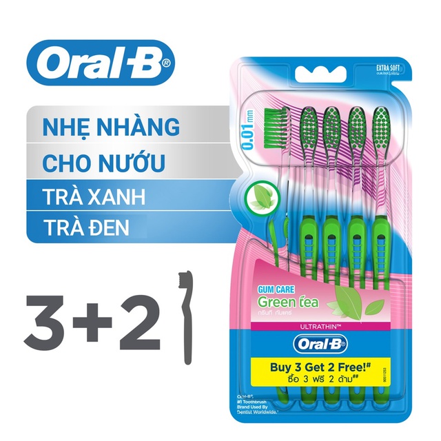Chi tiết các thông sỗ kĩ thuật kèm hình ảnh của bộ sản phẩm Bàn chải Oral-B tinh chất Trà Xanh/ Trà Đen vỉ 5 cây, quý khách xem dưới đây: