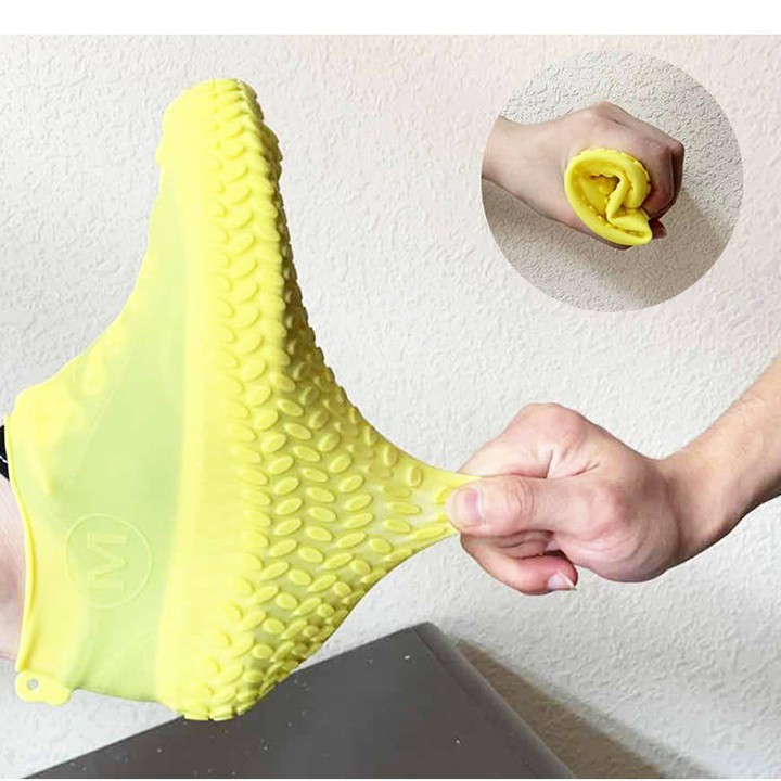 Bao bọc giày – đi mưa cho giày . Giúp bạn thoát khỏi nổi lo khi bước đi trong mưa hay ngang những vũng nước lầy lội. GIỚI THIỆU BAO TRÙM GIẦY ĐI MƯA – Chất liệu silicon, không thấm nước. Có thể xếp lại rất nhỏ gọn và mang theo bất cứ khi nào – Được thiết kế thông minh để có thể lội nước dưới 12cm mà không bị nước thấm vào bên trong – Đế làm bằng silicon mềm, gai dày chắc chắn, ma sát tốt, chống trơn trượt hiệu quả. – Thiết kế độc đáo, dễ mang vào, dễ tháo ra, dễ vận động. – Thiết kế rất thuận tiện đi mà như không đi; – Màu sắc: 6 màu (Đen/Xanh/Đỏ/Nâu/Trắng/Vàng) – Hướng dẫn chọn Size phù hợp: @ TRẺ EM: Size S (26-34, dài 20,9cm, 100gr) @ NGƯỜI LỚN: Tham khảo từ Size S – M – L, chi tiết: + Size S (26-34, dài 20,9cm, 100gr) + Size M (35-39, dài 24,5cm, 154gr) + Size L (40-44, dài 29,0cm, 192gr) – Làm thể nào để chọn Giầy đi mưa phù hợp với Giầy bạn đang đi + Đối với giầy vải hoặc giầy da thì size giầy bạn đang đi là bao nhiêu chọn Giầy đi mưa size bấy nhiêu + Đối với giầy thể thao hầm hố hoặc giầy đặc chủng thì size giầy bạn đang đi là bao nhiêu chọn Giầy đi mưa to hơn 1-2 cỡ tùy vào độ hầm hố của giày NHỮNG ĐIỀU CẦN CHÚ Ý: 1-Sử dụng ngoài trời: nền nhà gạch bóng, trơn không phù hợp sử dụng; 2-Tránh các vật sắc nhọn; 3-Nghiêm cấm trẻ nhỏ dùng làm mũ trùm đầu, gây ngạt thở. #baobocgiay #baotrumgiay #bocgiaydimua #giaythethao #tuibocgiay #silicon