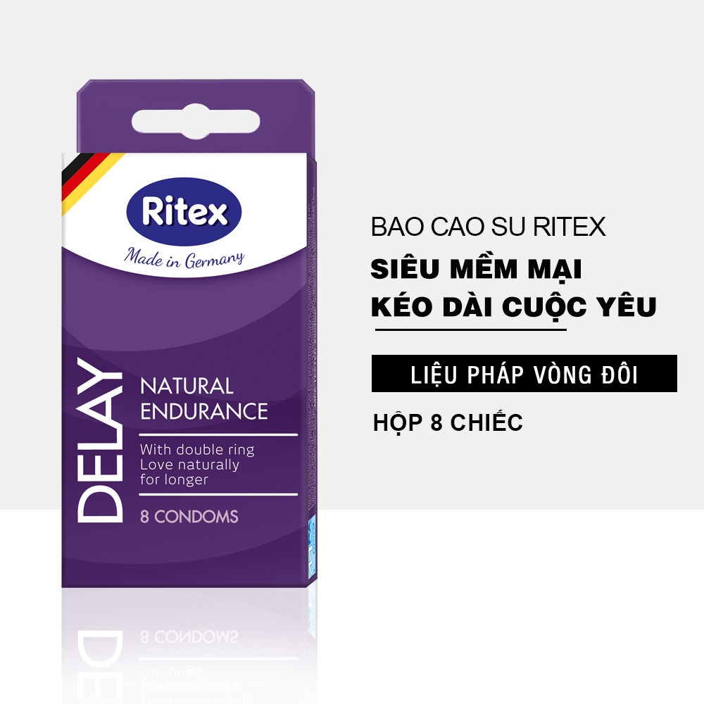 Bộ sản phẩm Bao cao su RITEX DELAY – Kéo dài thời gian Liệu pháp vòng đôi (Hộp 8 chiếc) JN-RI-DELAY8 Thương hiệu: Ritex.