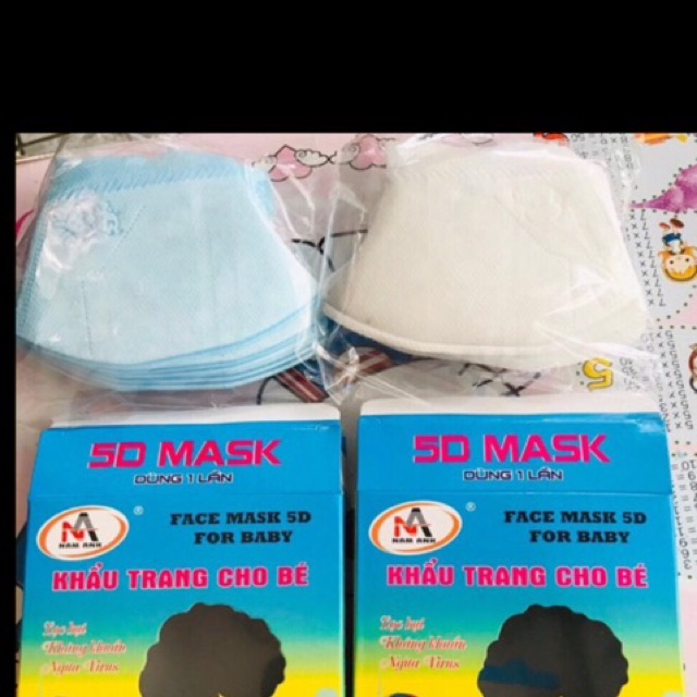SẢN PHẨM BẢO VỆ SỨC KHOẺ CHO BÉ Yêu #Thành phần cấu tạo : -Thun đeo tai mềm, vải không dệt SMS Pluss 3+ và SS kháng nước. #Công dụng & ưu điểm : -Ngăn ngừa bụi, vi khuẩn, các bệnh lây truyền qua đường hô hấp. -Ngăn ngừa tia UV tiếp xúc da trẻ em -Thiết kế 5D ôm sát, hàn siêu âm dọc thoáng khí không gây cảm giác ngộp cho trẻ. -Có hai màu trắng xanh